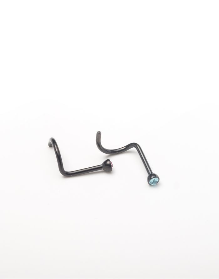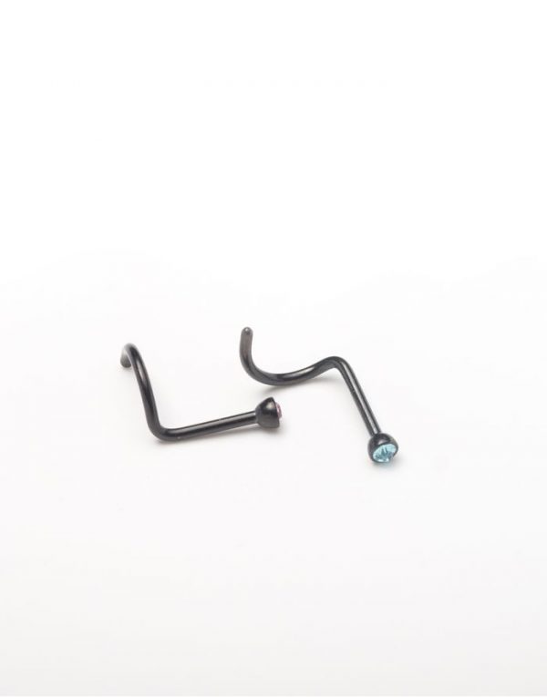 Stainless Steel Black PVD Coated Jewelled Pigtail/Cork Screw Nose Ring